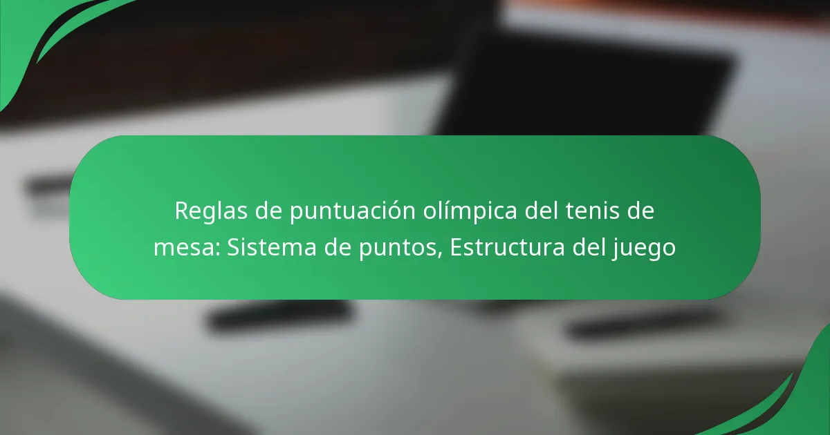 La puntuación del tenis de mesa olímpico sigue un sistema específico donde los partidos se juegan en un formato de mejor de cinco o mejor de siete. Cada juego se juega hasta 11 puntos, y los jugadores deben ganar por al menos un margen de dos puntos.